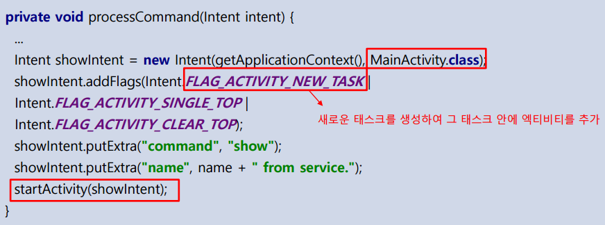 서비스는 액티비티가 없으니까 NEW_TASK를 만들어야 한다.