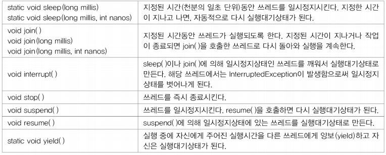 쓰레드의 실행을 제어하기 위해 사용하는 메서드들을 살펴보자.