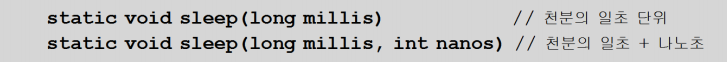 static 메서드이기 때문에 클래스명.sleep() 로 사용한다. ******중요********