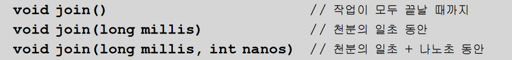 지정된 시간동안 특정 쓰레드가 작업하는 걸 기다린다.