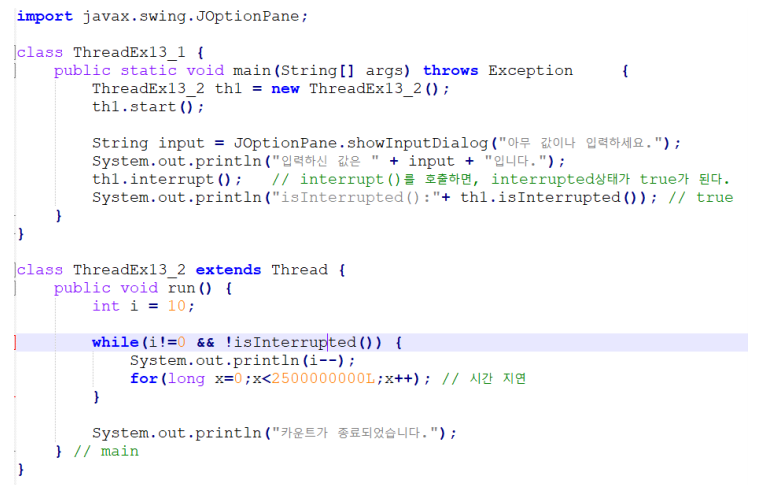 interrupt 메서드를 활용해 조건문으로 활용할 수 있다.