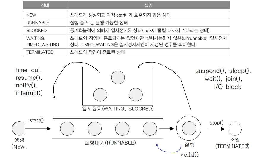 이 메서드들을 하나하나 살펴보기 전에 쓰레드의 상태에 대해 알고있어야 한다.