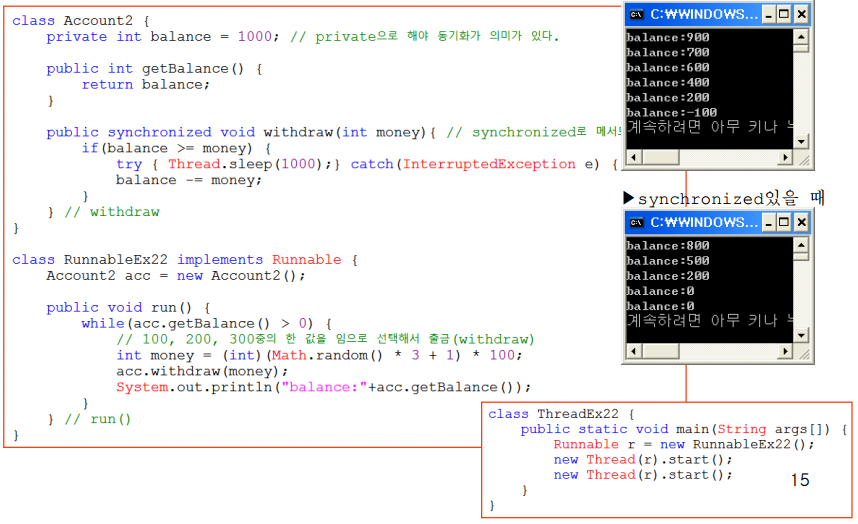 synchronized가 없으면 변수가 음수로 지정될 수 있다.