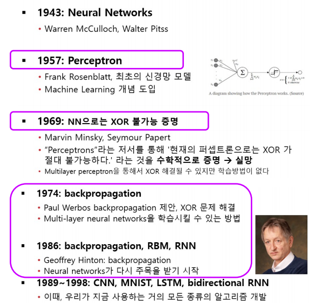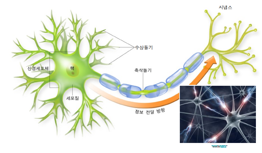 뉴런들의 동작 방식을 연구한 결과 인공신경망(Perceptron)이 발명됐다.