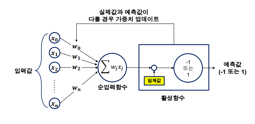 입력값들을 받아들이고, (x0 ~ xn) 각각의 입력에 weight를 붙여준다 (w0~wn) (파라미터로 작용함. H = Wx+b 느낌)